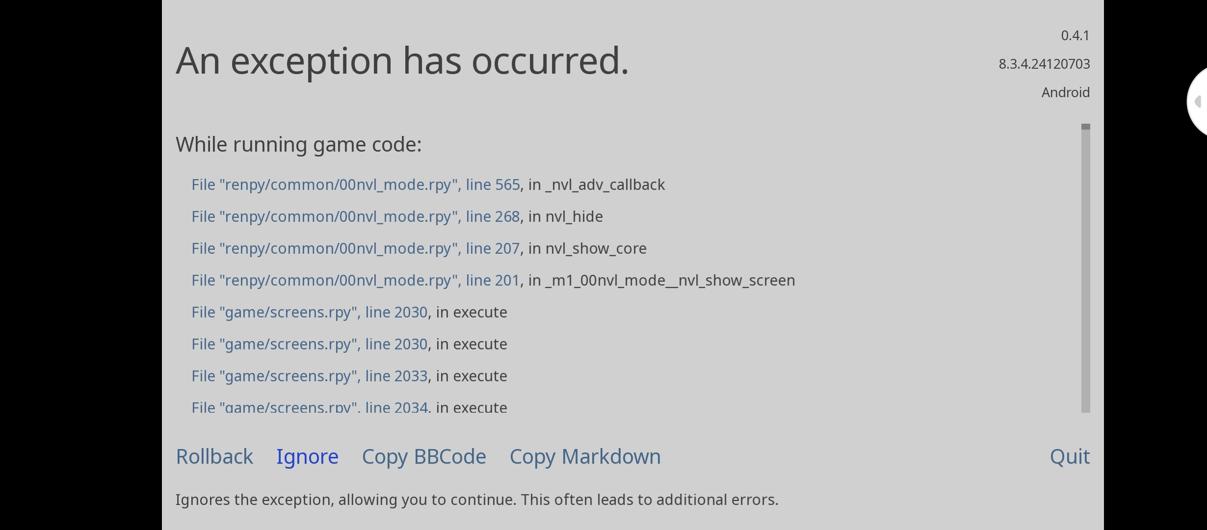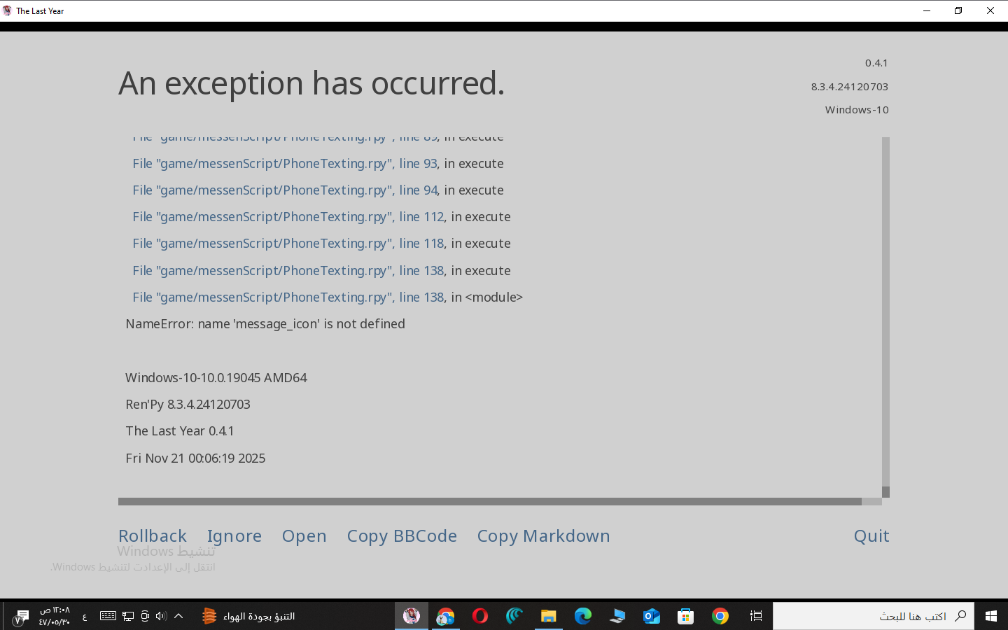 Please scroll all the way down. From the screenshot you attached, it doesn’t show what caused the error.